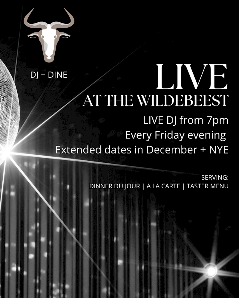 The Friday DJ + Dine series at The Wildebeest now runs every Friday (7 pm – 11 pm) and will expand through 2026 — including special DJ events and a New Year’s Eve celebration. It stands as a showcase of what happens when exceptional sound meets exceptional flavour — all made possible by Martin’s Hi-Fi.